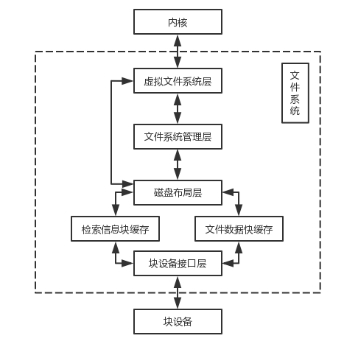 I/O设备的读写是影响文件系统性能的关键。为了提升性能,需要利用局部性原理设计缓存以减小I/O设备读写次数。此外,为了避免不同类型的块数据覆盖而造成效率下降,我们设计了双路缓存,分别存储文件数据和检索信息。